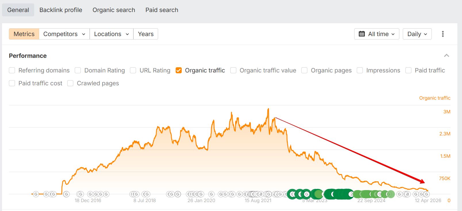 Traffic declines after core updates
