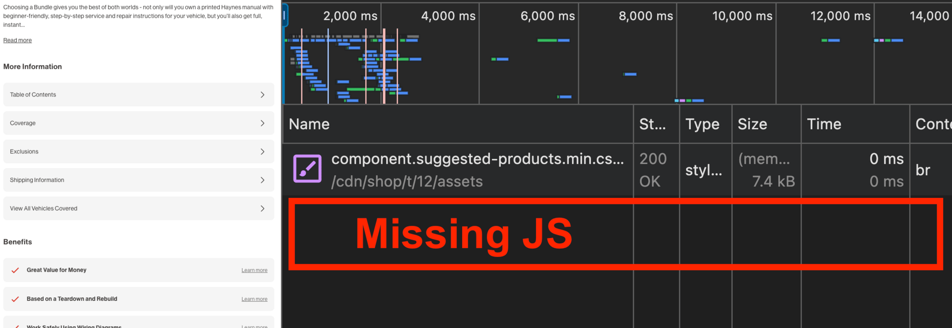 Here is an example of a client using a “recommended products“ block that depends on Javascript to be rendered: